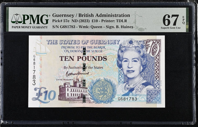 Guernsey 10 Pounds ND 2023 P 57 e Superb Gem UNC PMG 67 EPQ