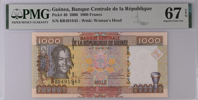 Guinea 1000 Francs 2006 P 40 Superb Gem UNC PMG 67 EPQ