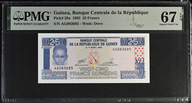 Guinea 25 Francs 1985 P 28 a Superb Gem UNC PMG 67 EPQ