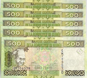 Guinea 500 Francs 2006 P 39 a UNC Lot 5 Pcs