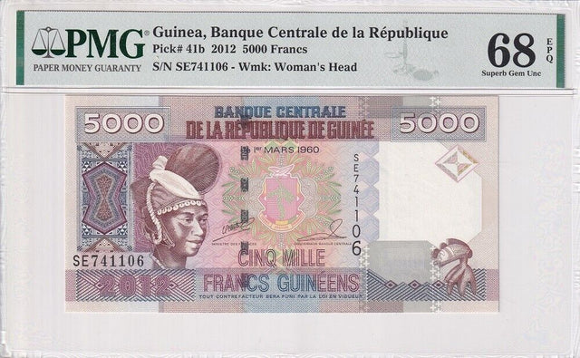 Guinea 5000 Francs 2012 P 41 b Superb Gem UNC PMG 68 EPQ Top Pop