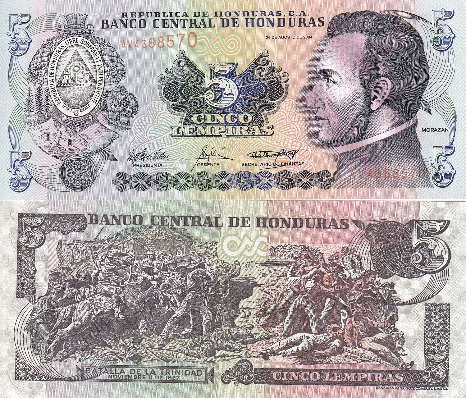 HONDURAS 5 LEMPIRAS 2004 P 85 d UNC