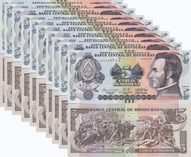 Honduras 5 Lempiras 2022 P 98 e UNC LOT 10 PCS