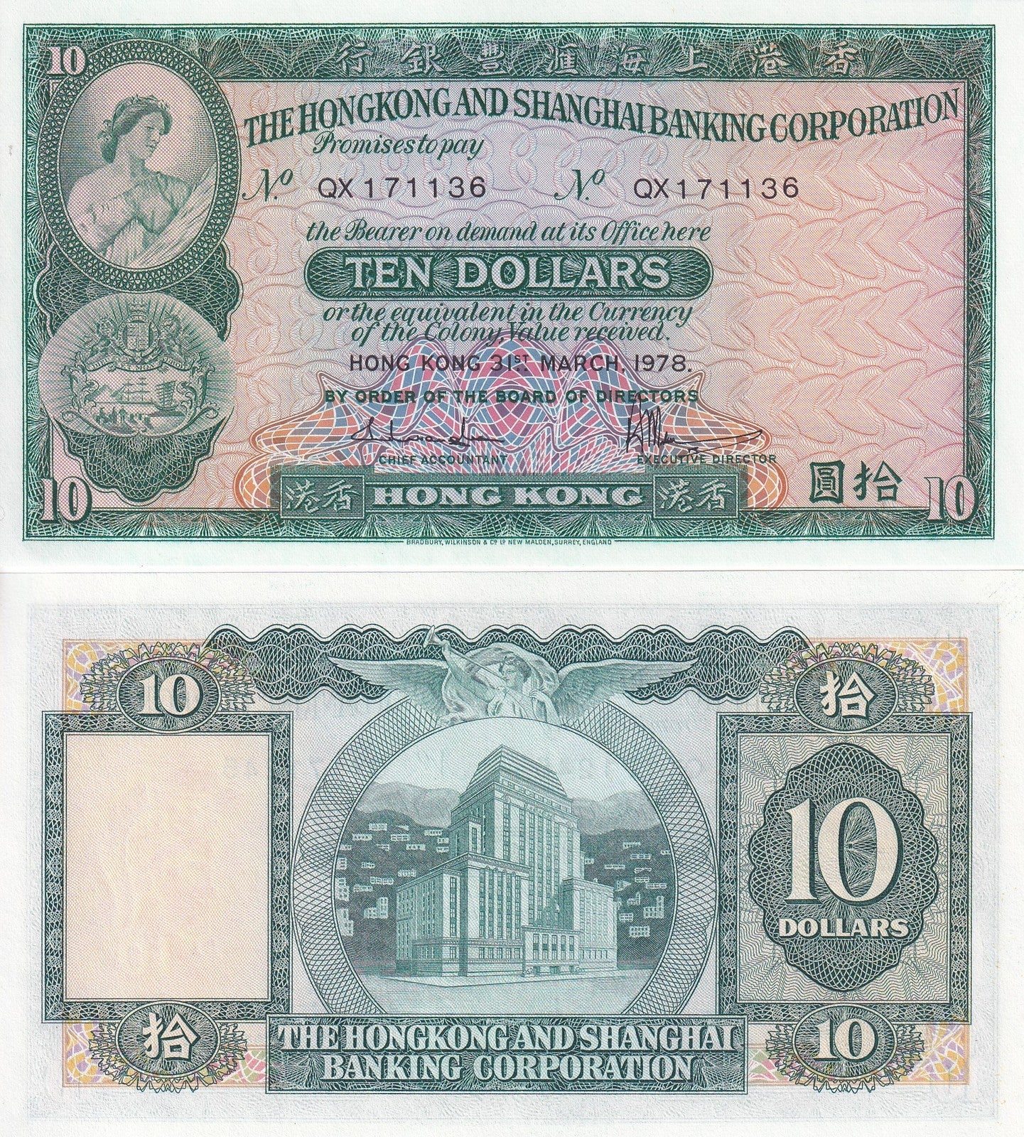 Hong Kong 10 Dollars 1978 P 182 h UNC
