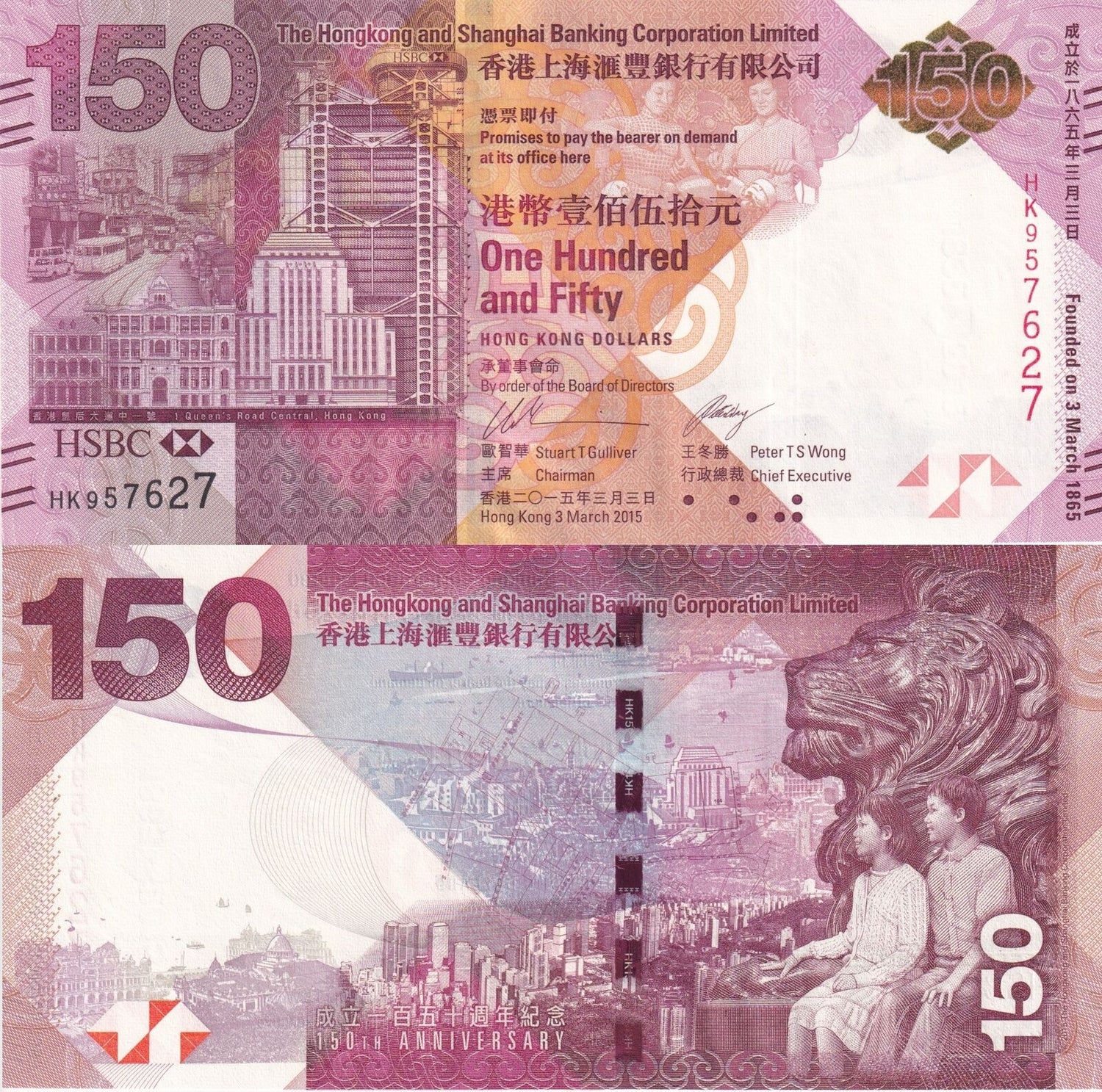 Hong Kong 150 Dollars 2015 P 217 a UNC