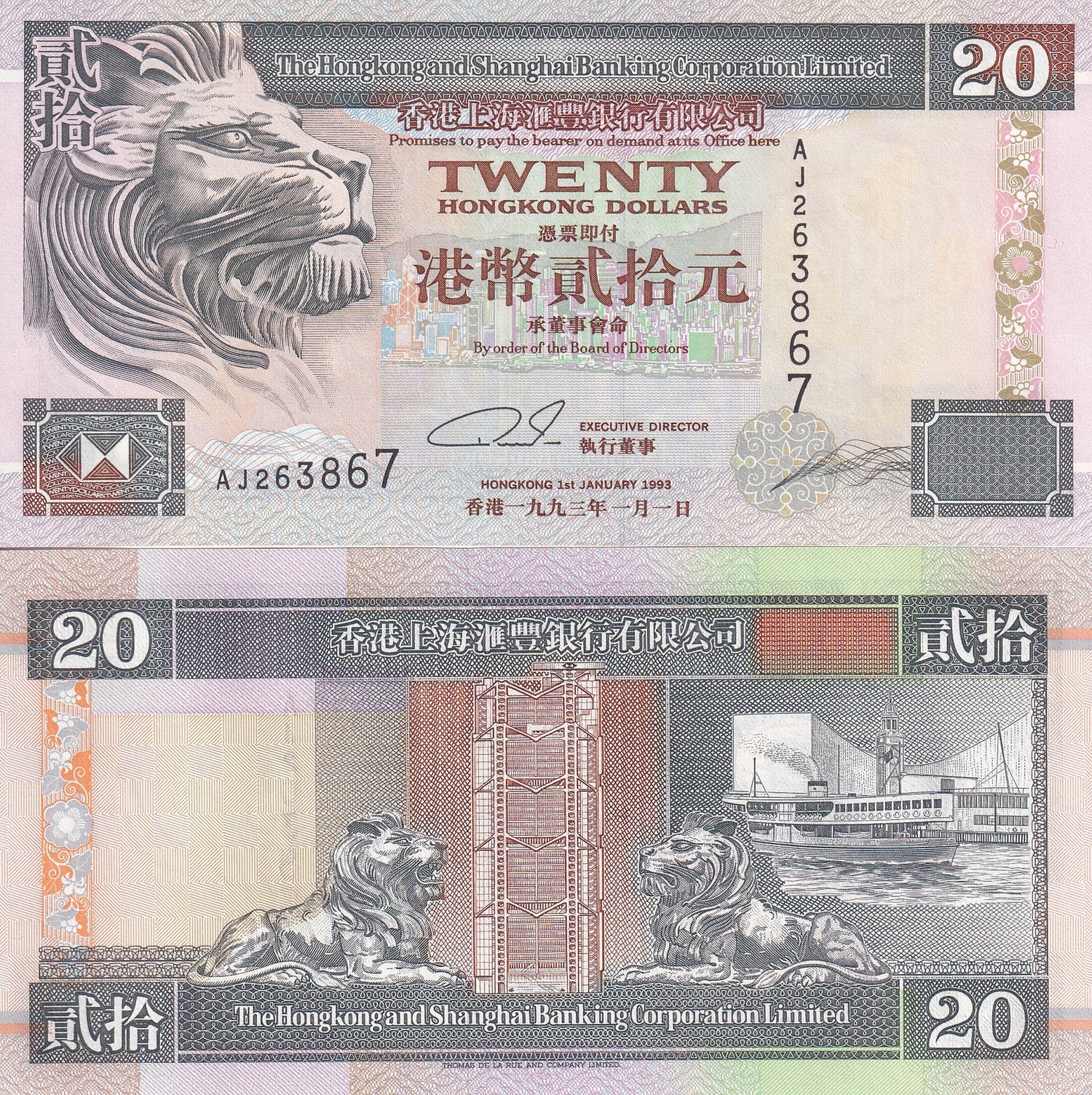 Hong Kong 20 Dollars 1993 P 201 a HSBC UNC