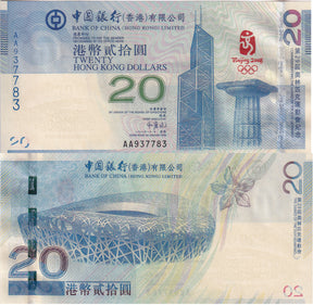 Hong Kong 20 Dollars 2008 Boc Comm. P 340 a AA Prefix UNC