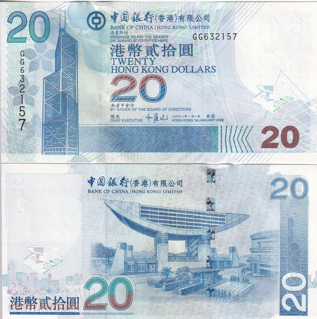 Hong kong 20 Dollars 2008 P 335 e BOC UNC
