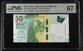 Hong Kong 50 Dollars 2018 P 349 a BOC Superb Gem UNC PMG 67 EPQ