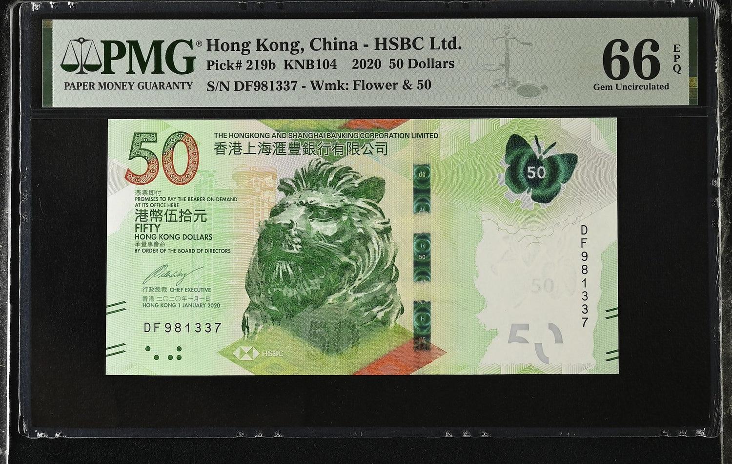 Hong Kong 50 Dollars 2020 P 219 b HSBC Gem UNC PMG 66 EPQ