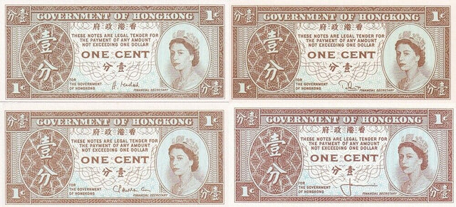 Hong Kong Set 4 PCS 1 Cent ND 1961 - 1995 P 325a P 325b P 325c P 325e UNC NR