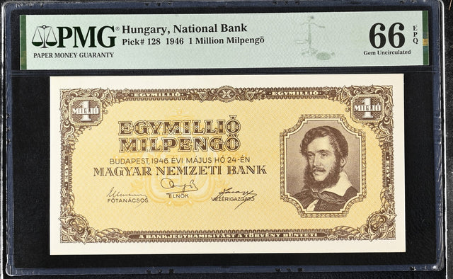 Hungary 1 Million Milpengo 1946 P 128 Gem UNC PMG 66 EPQ