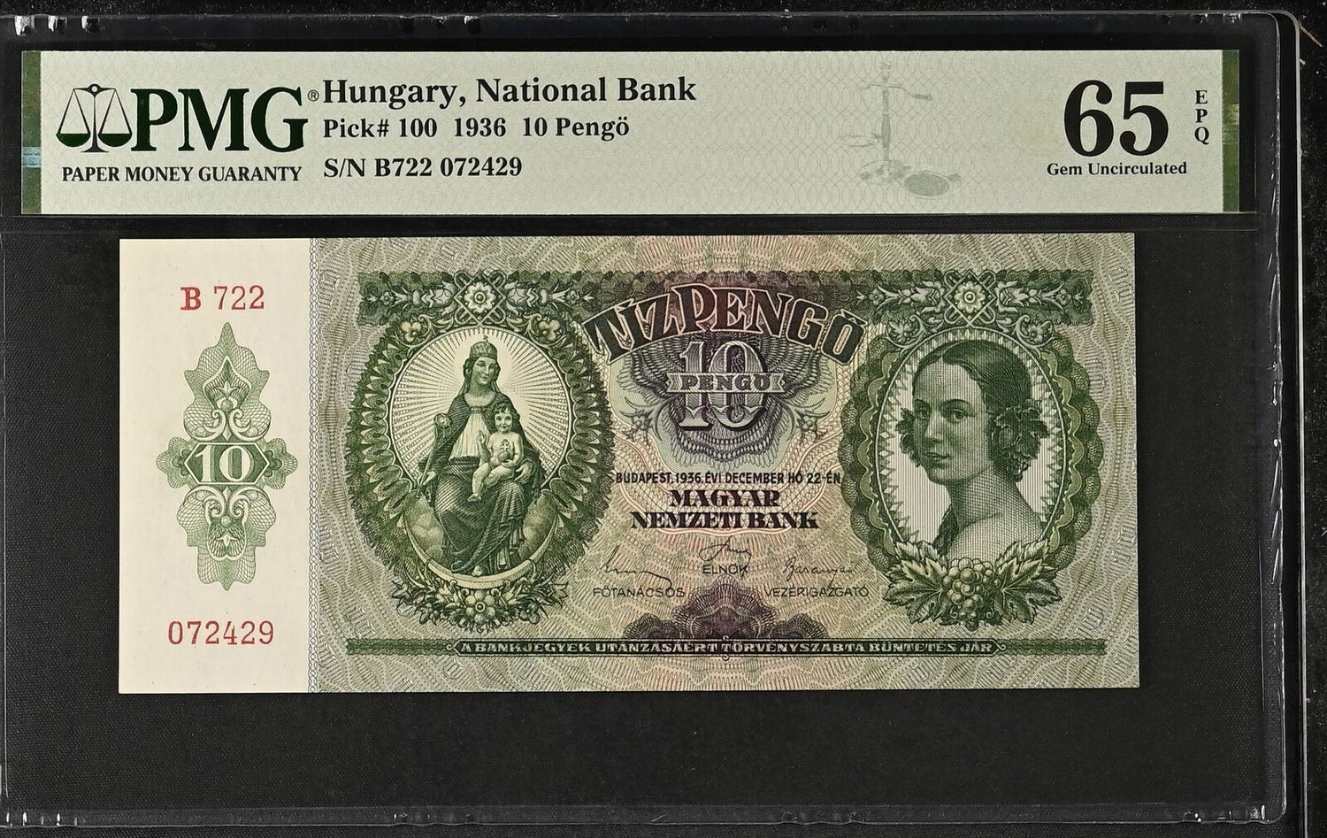 Hungary 10 Pengo 1936 P 100 Gem UNC PMG 65 EPQ