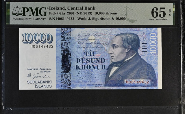 Iceland 10000 Kronur 2001 ND 2013 P 61 a Gem UNC PMG 65 EPQ