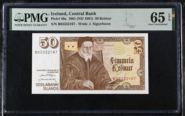 Iceland 50 Kronur 1961 ND 1981 P 49 a Gem UNC PMG 65 EPQ