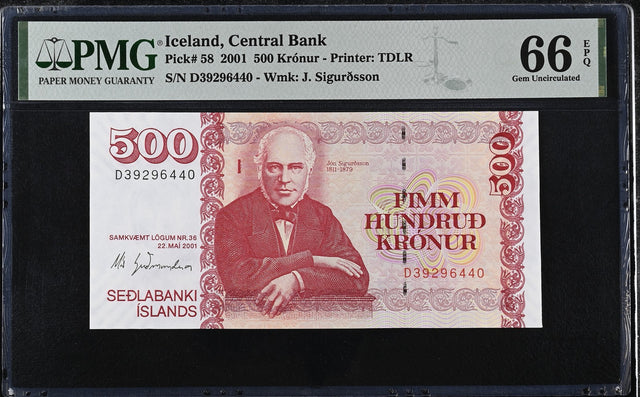 Iceland 500 Kronur 2001 P 58 Gem UNC PMG 66 EPQ