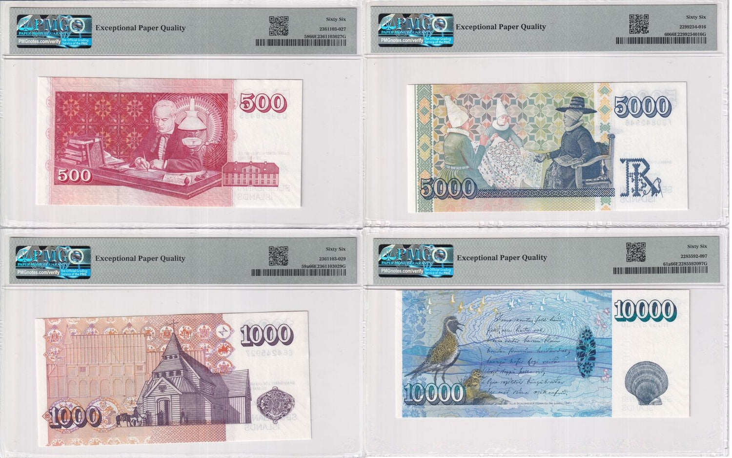 Iceland Set 4; 500 100 5000 10000 Kronur 2001 P 58 59 60 P 61 Gem UNC PMG 66 EPQ