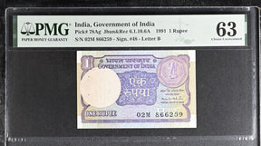 India 1 Rupee 1991 P 78 Ag Choice UNC PMG 63