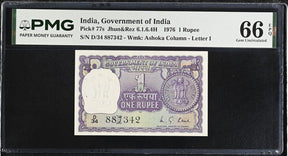 India 1 Rupees ND 1976 P 77 s Gem UNC PMG 66 EPQ ISSUED Pin hole TOP POP
