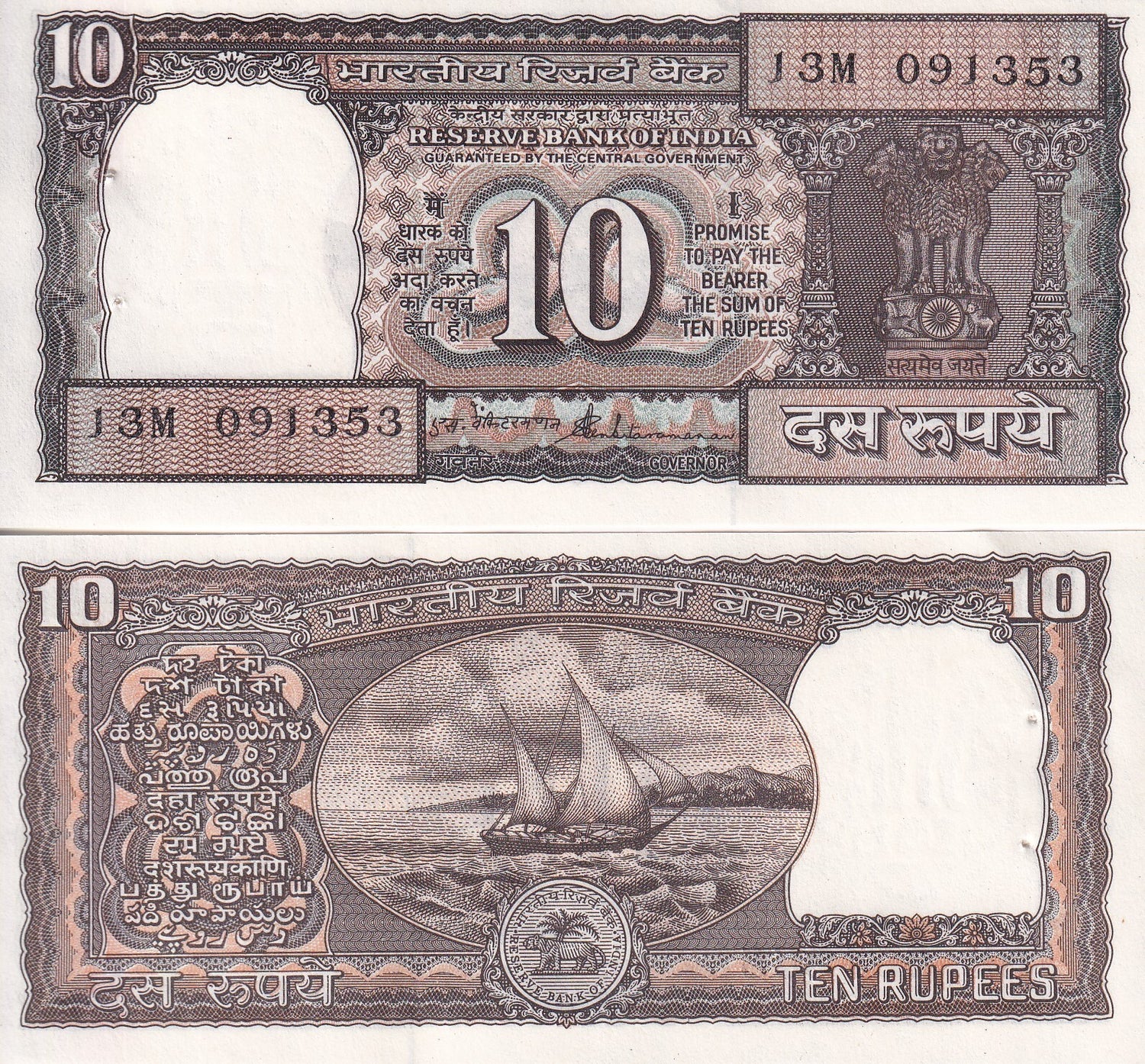 India 10 Rupees 1990 - 1992 P 60Ac UNC With Issued Pin Hole