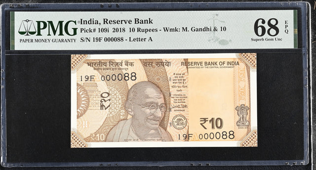 India 10 Rupees 2018 P 109 i Low # 88 Superb GEM UNC PMG 68 EPQ