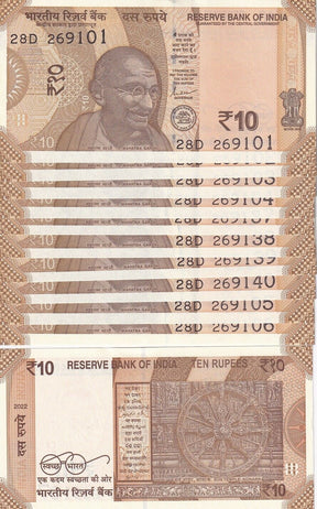 India 10 Rupees 2022 P 109 UNC 10 PCS