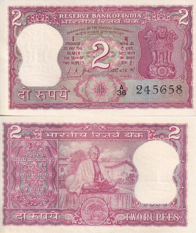 India 2 Rupees ND 1969-1970 P 67a Commemorative Gandhi UNC W/H
