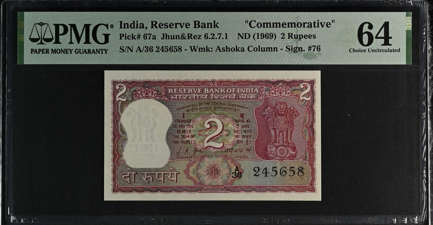 India 2 Rupees ND 1969 P 67 a Comm. Choice UNC PMG 64