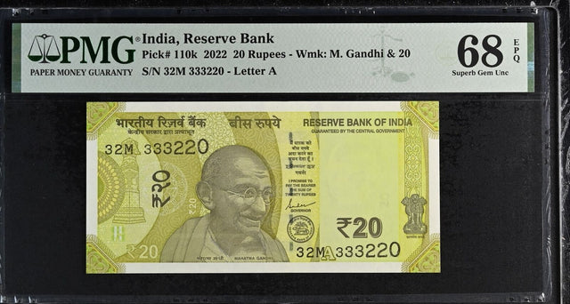 India 20 Rupees 2022 P 110 k Superb Gem UNC PMG 68 EPQ