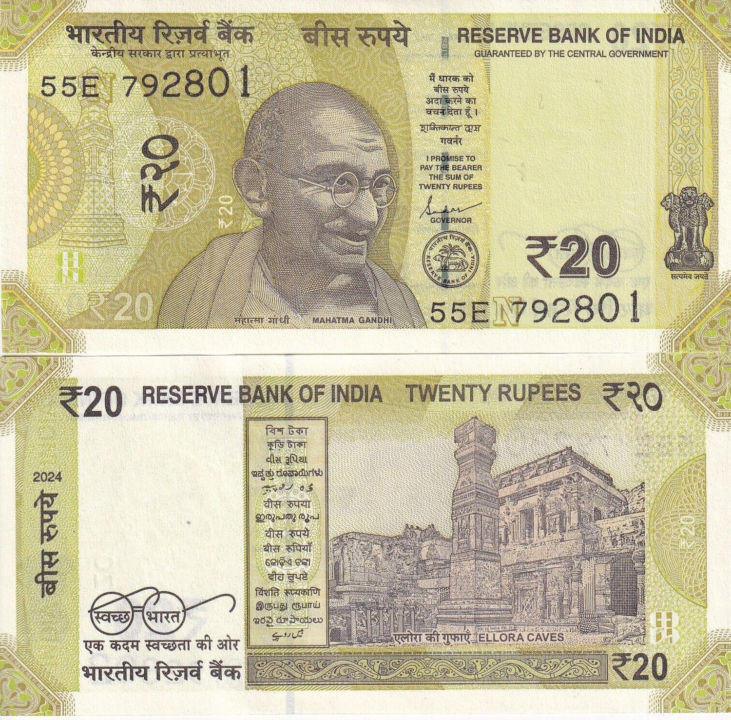 India 20 Rupees 2024 P 110 UNC NEW Date