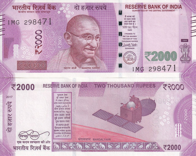 India 2000 Rupees 2017 P 116 c with Defect color Mark UNC