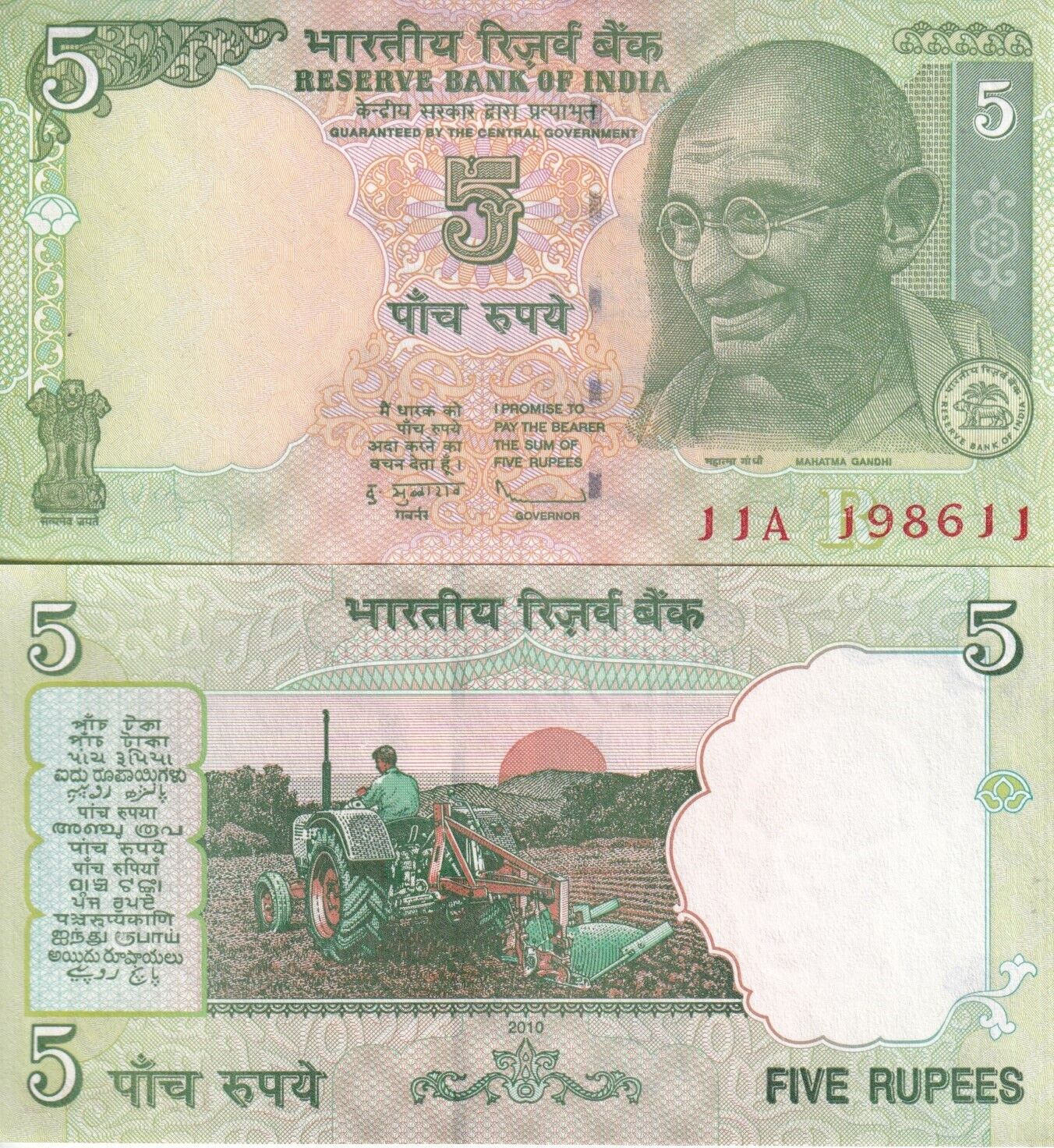 India 5 Rupees 2010 P 94 Ad UNC