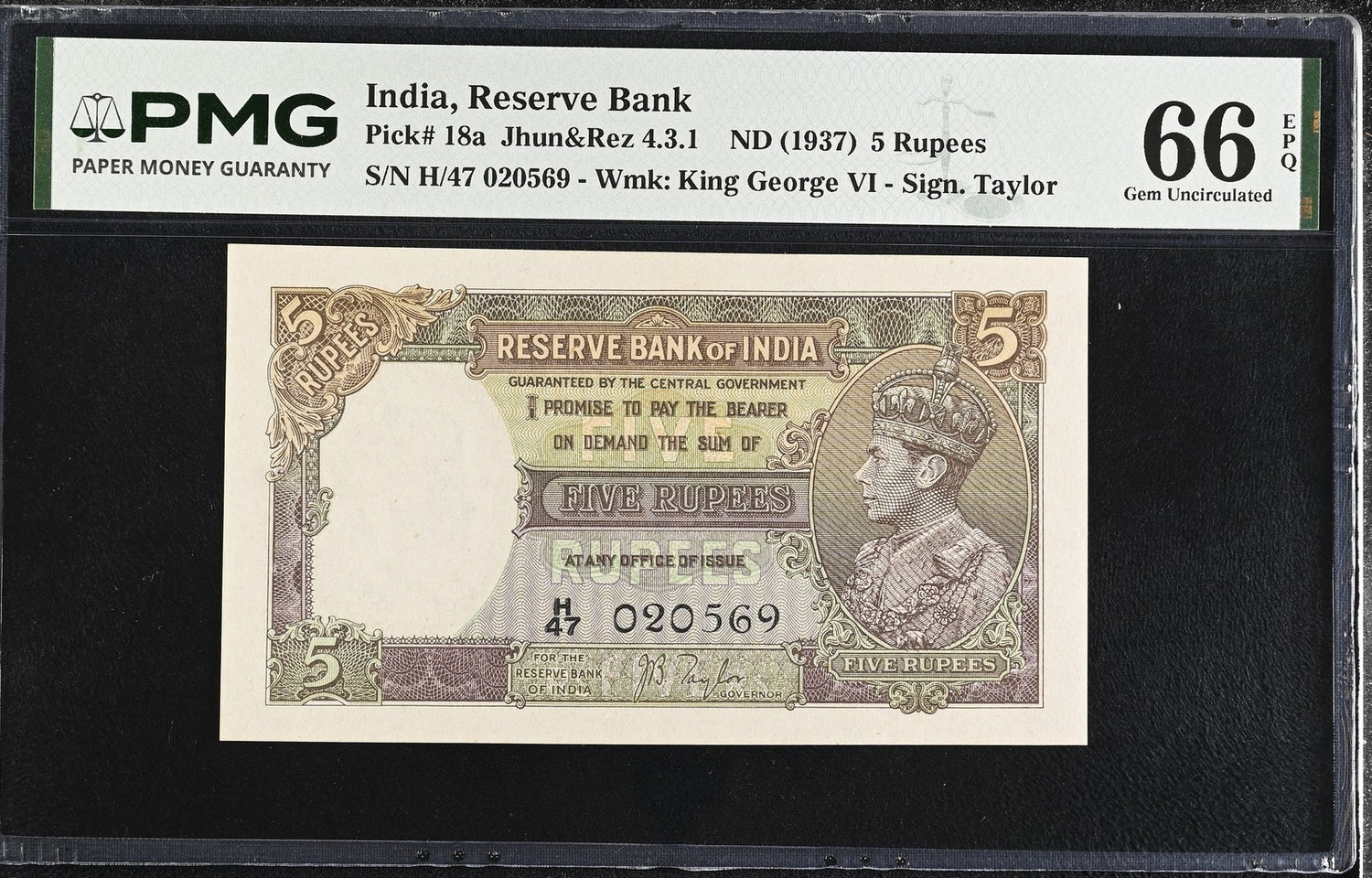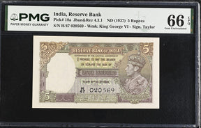 India 5 Rupees ND 1937 P 18 a Gem UNC PMG 66 EPQ