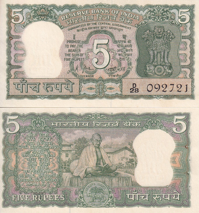 India 5 Rupees ND 1969-1970 P 68 a UNC With Issued Pin Hole