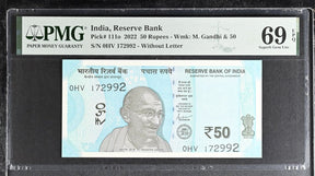India 50 Rupees 2022 P 111 o Without Letter Superb Gem UNC PMG 69 EPQ TOP POP