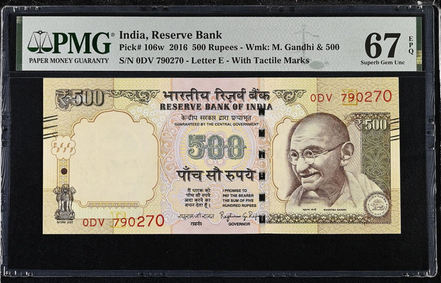 India 500 Rupees 2016 P 106 W Superb Gem UNC PMG 67 EPQ