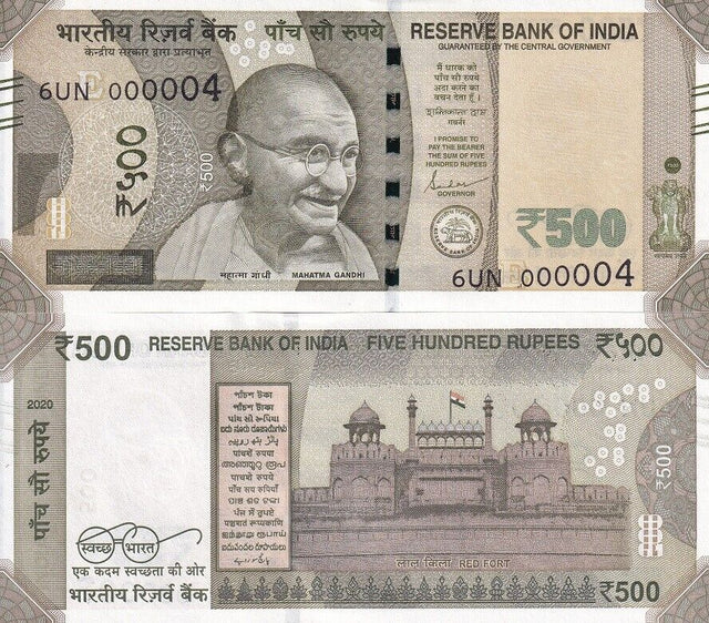 India 500 Rupees 2020 Letter E 1 DIGIT LOW #000004 P 114 UNC