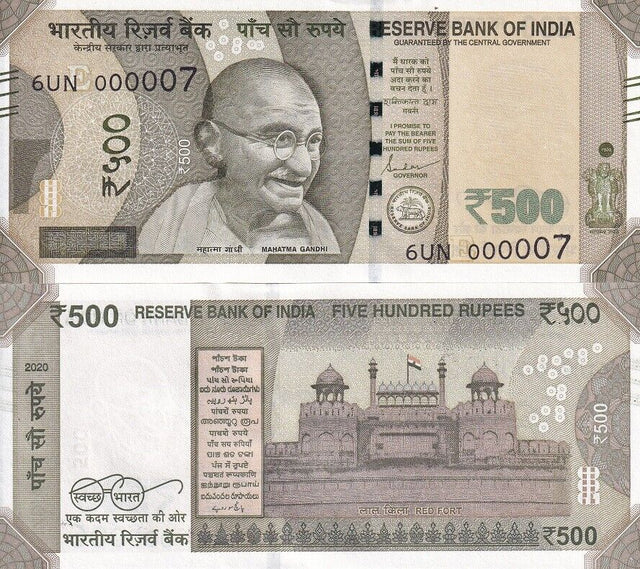 India 500 Rupees 2020 Letter E 1 DIGIT LOW #000007 P 114 UNC