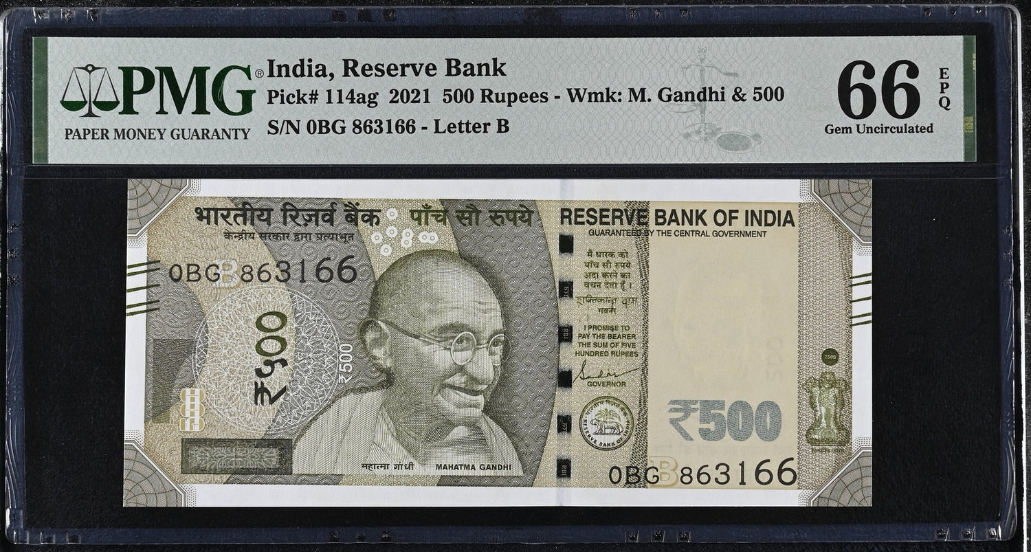 India 500 Rupees 2021 P 114 ag Gem UNC PMG 66 EPQ