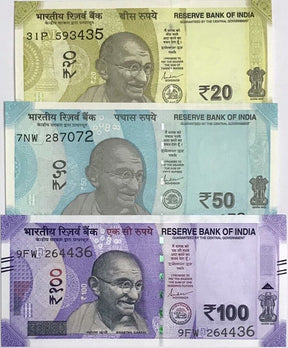 India Set 3 PCS 20 50 100 Rupees 2022 P 110 P 111 P 112 UNC