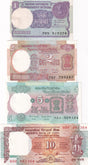 India Set 4 Pcs 1 2 5 10 Rupees P 78 79 80 88 Random Sign UNC W/H
