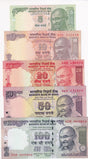 India Set 5 Pcs 5 10 20 50 100 Rupees Random Year UNC