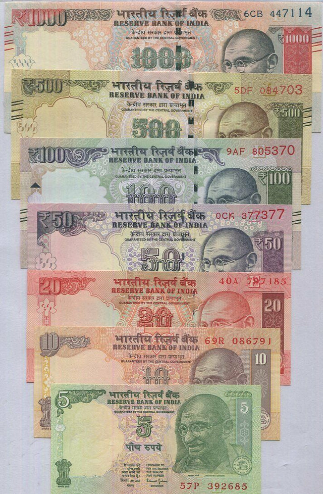 India set 7 UNC 5 10 20 50 100 500 1000 Rupees P 88A 102 103 104 105 106 107