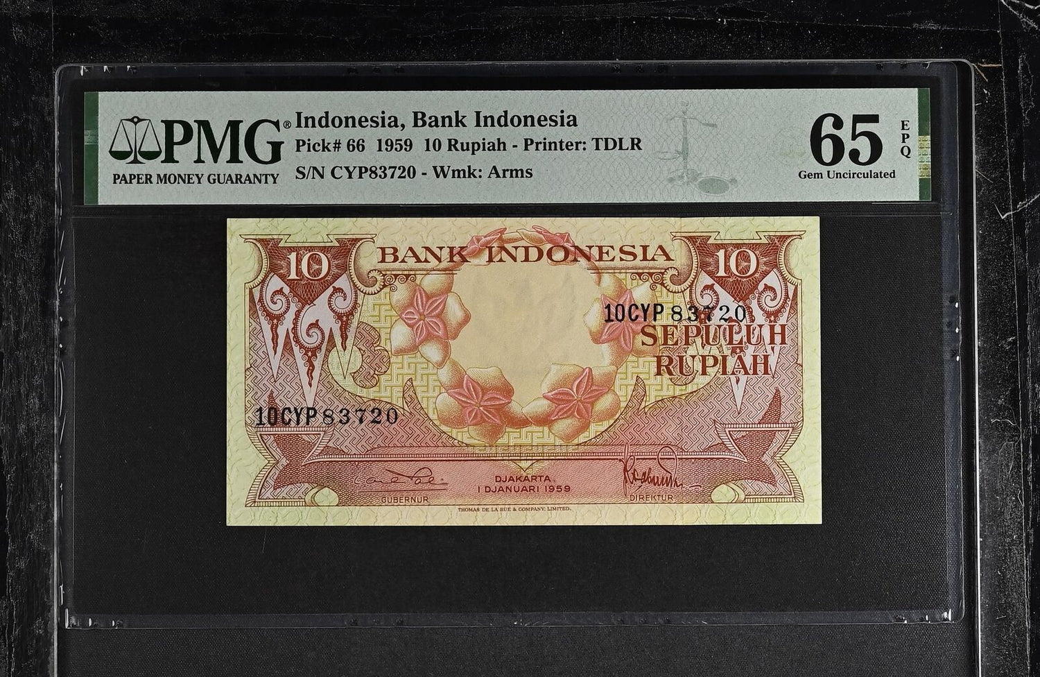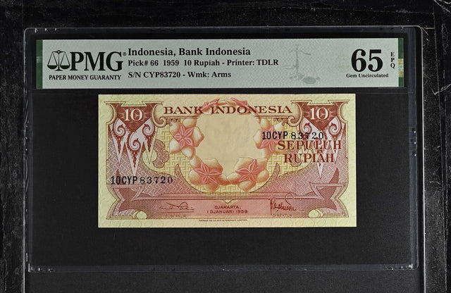 Indonesia 10 Rupiah 1959 Flower P 66 Gem UNC PMG 65 EPQ
