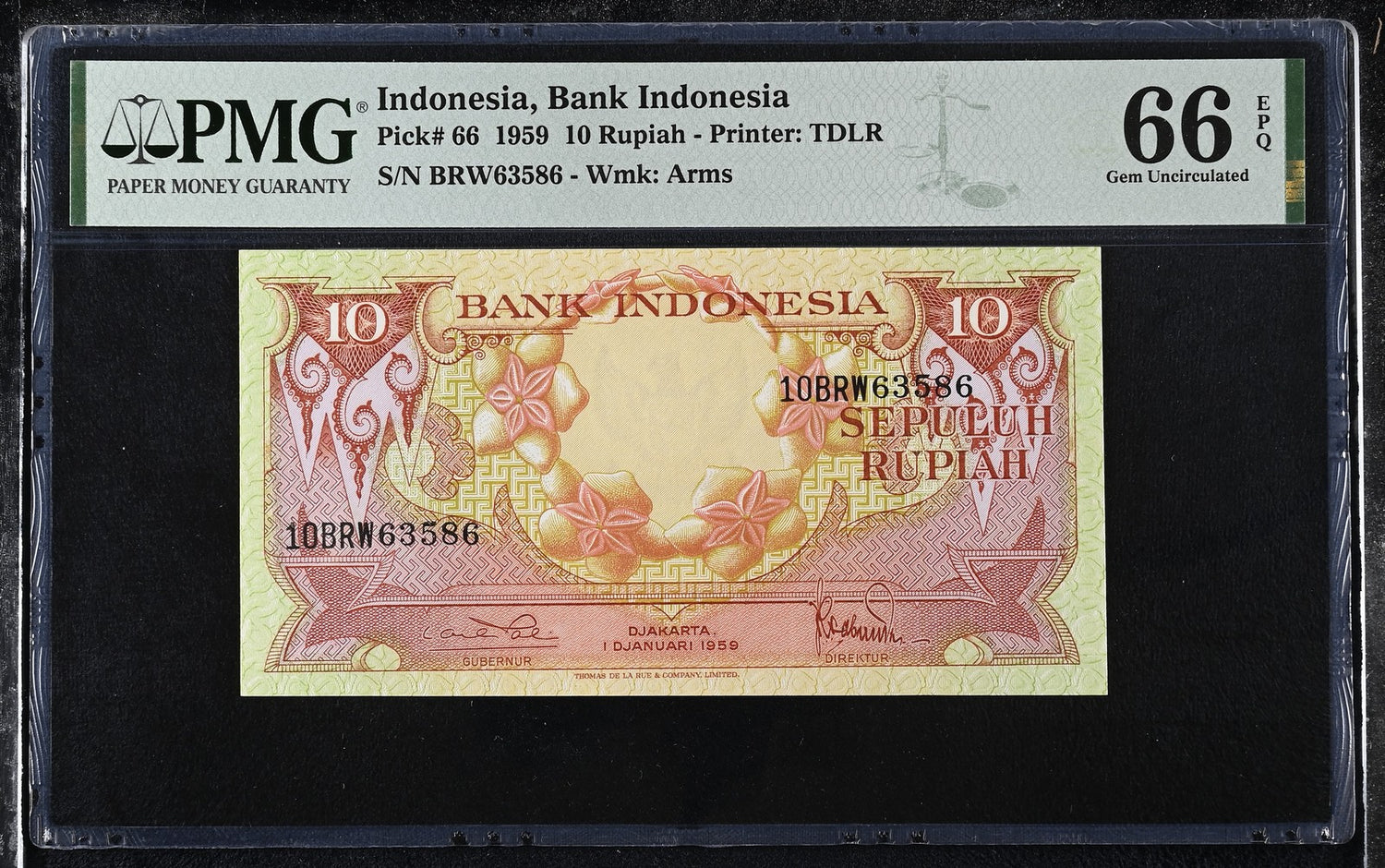Indonesia 10 Rupiah 1959 Flower P 66 Gem UNC PMG 66 EPQ