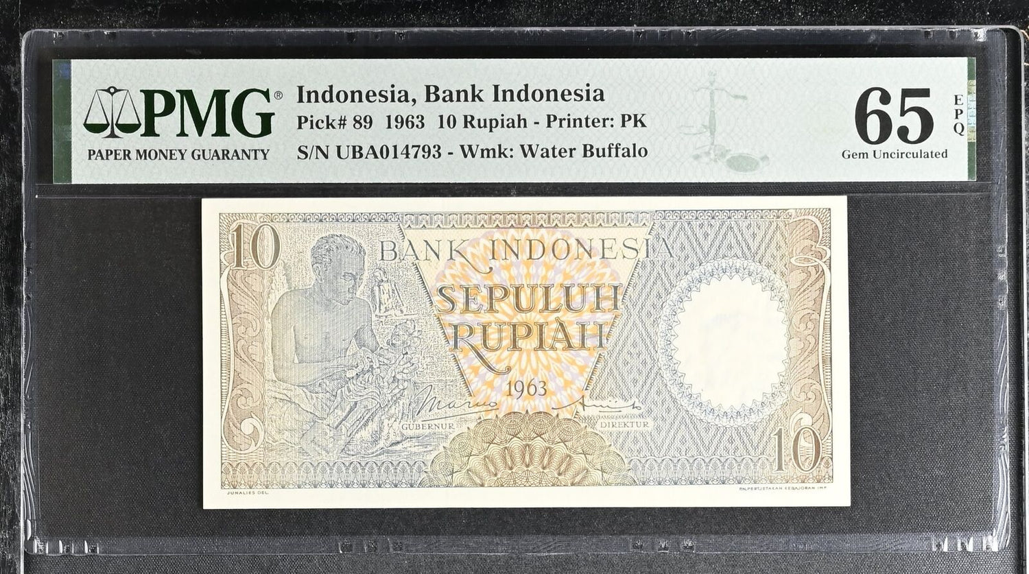 Indonesia 10 Rupiah 1963 P 89 Gem UNC PMG 65 EPQ
