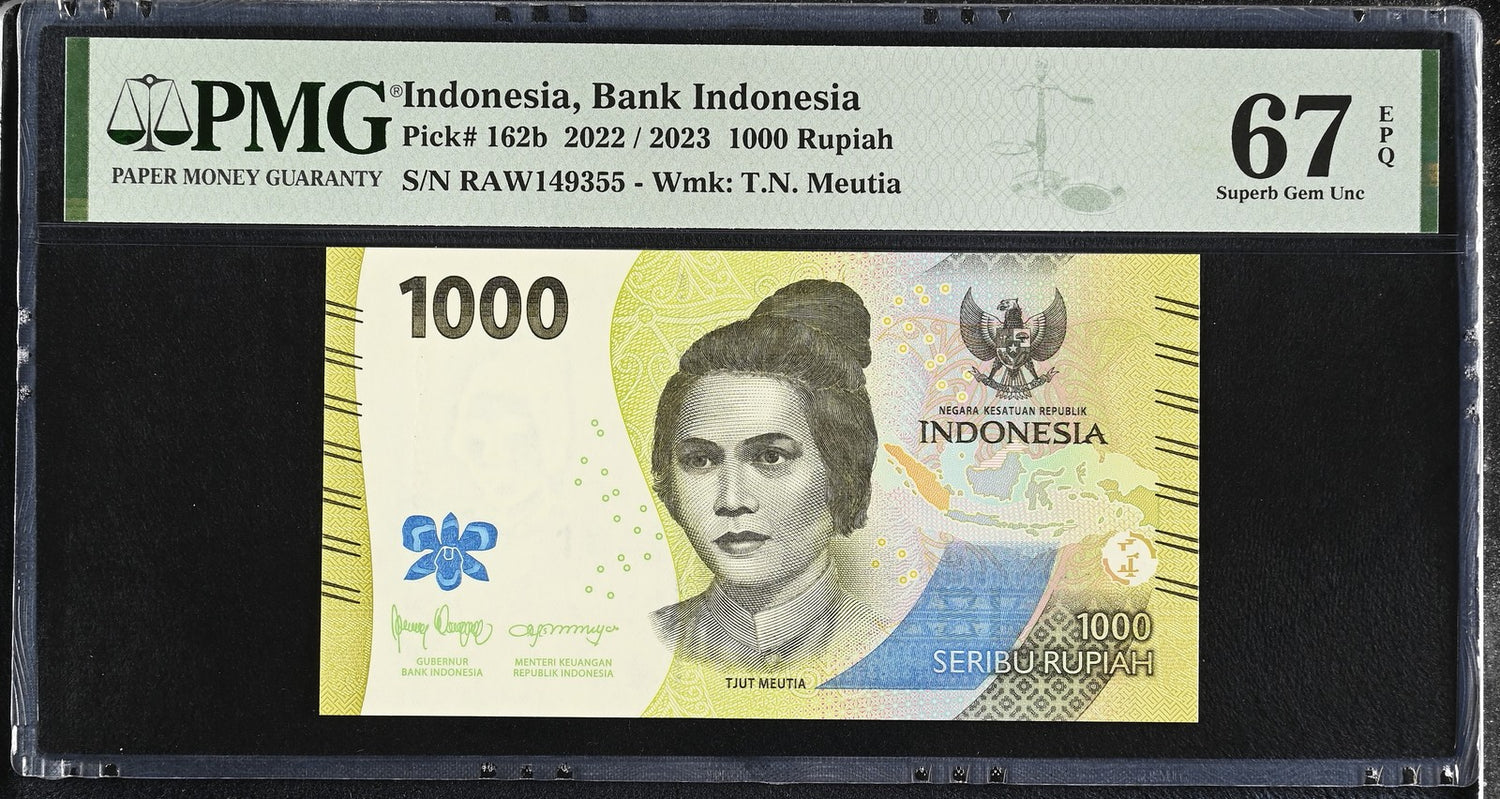 Indonesia 1000 Rupiah 2022 / 2023 P 162 b Superb Gem UNC PMG 67 EPQ