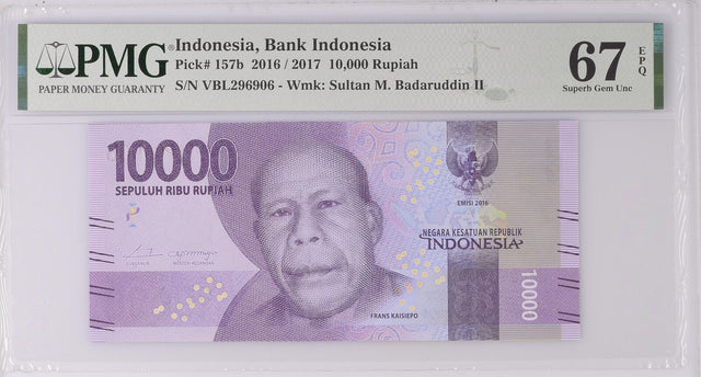 Indonesia 10000 Rupiah 2016/2017 P 157 b Superb Gem UNC PMG 67 EPQ