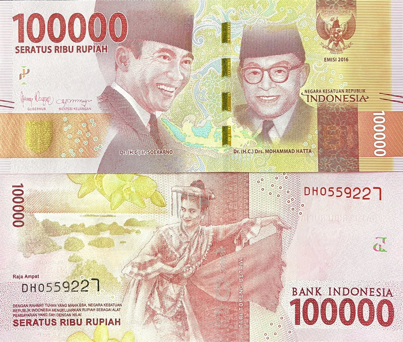 Indonesia 100000 Rupiah 2016/2019 P 160 UNC