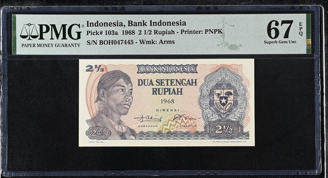 Indonesia 2 1/2 Rupiah 1968 P 103 a Superb Gem UNC PMG 67 EPQ